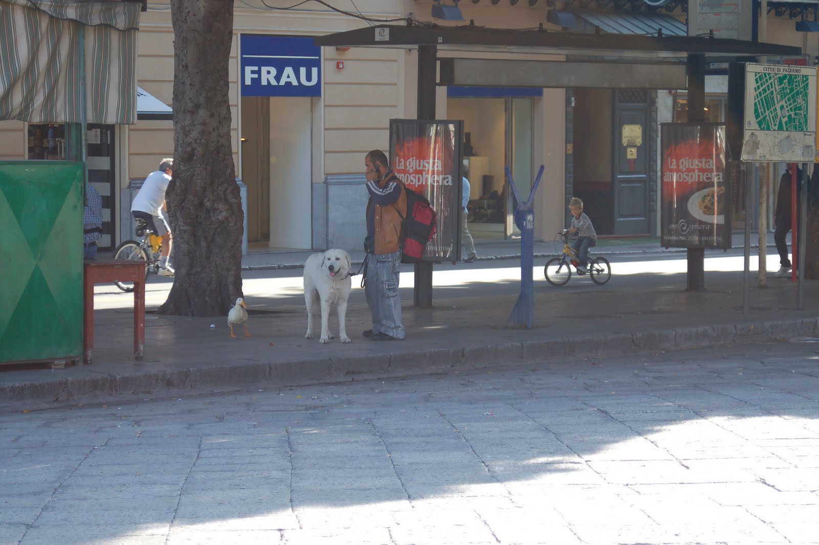 None of the above is meant to imply that we wouldn’t recommend a visit to Palermo. It’s just you know quickly that you aren’t in Kansas anymore, Dorothy. For example, every town with a public square has its resident bum, and many have a bum and his dog, but how many have a bum, his dog and his duck? (Ok, it technically might be a goose, but who’s counting?) The one I refer to hangs in front of the main opera house, which was where the final scene of Godfather Part 3 was filmed. Went by it three times at least, dude, dog and duck were always in the same spot. Then there was the couple with a stroller we followed down the street on Friday night, only to have them walk into the place we had the rice ball on Saturday; totally different part of town. Very Twilight Zonish.