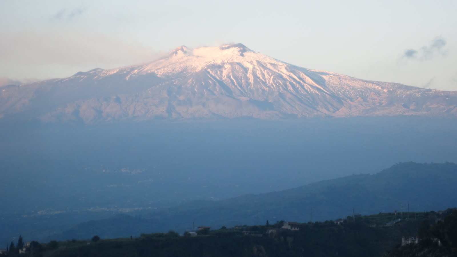 We awoke this morning to this spectacular view of Mt. Etna. It’s a day late for our trip up the mountain, but no less inspiring. There are a few clouds on the south side of the mountain, which is where you go for the views for the surrounding area, so no guarantee there would be good visibility even if we were to try to return. (Not likely.) For now, it is good enough to enjoy the morning coffee and the view. We don’t want to leave.