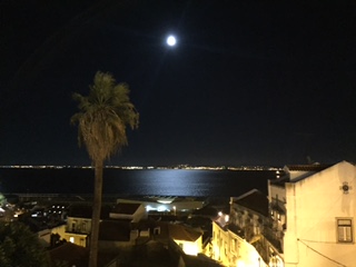 First was Santiago de Alfama in the older part of Lisbon, high on a hill near Sao Jorge castle. It’s a cool, boutique hotel that was originally a 15th century palacio. The included breakfast was delicious, as was the dinner we ate there. The staff were very friendly and accommodating. Below is a picture of the view from the rooftop terrace. I can’t believe we were always the only people there. I guess not everyone is as obsessed with views as I am!