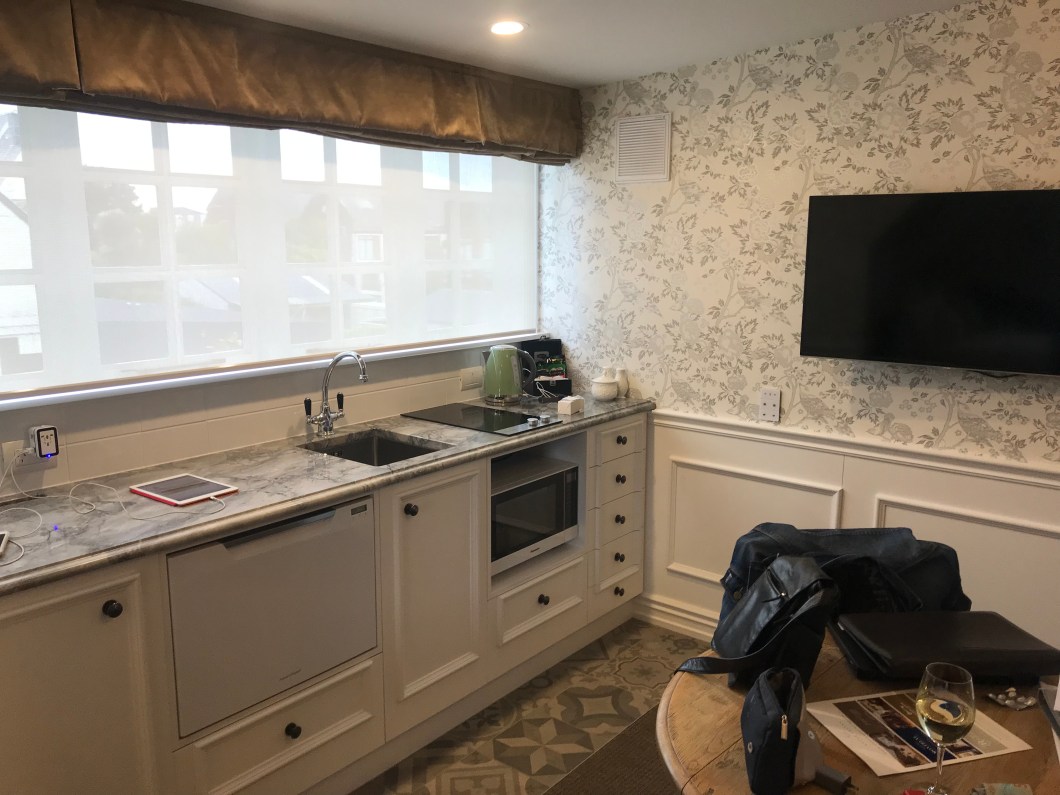 We finally made it to Christchurch after a one hour flight delay, but it sounds like we were lucky to get in. It’s raining and windy, and the inbound flight was pretty bumpy, but once on the ground it was a short drive to our hotel, The George. The hotel seems quite nice and our room is a small suite with a kitchenette if we are inclined to have any food or snacks in. Given I’m the cook and on vacation, we will see. But the unit is fully equipped so it is like having a small apartment.