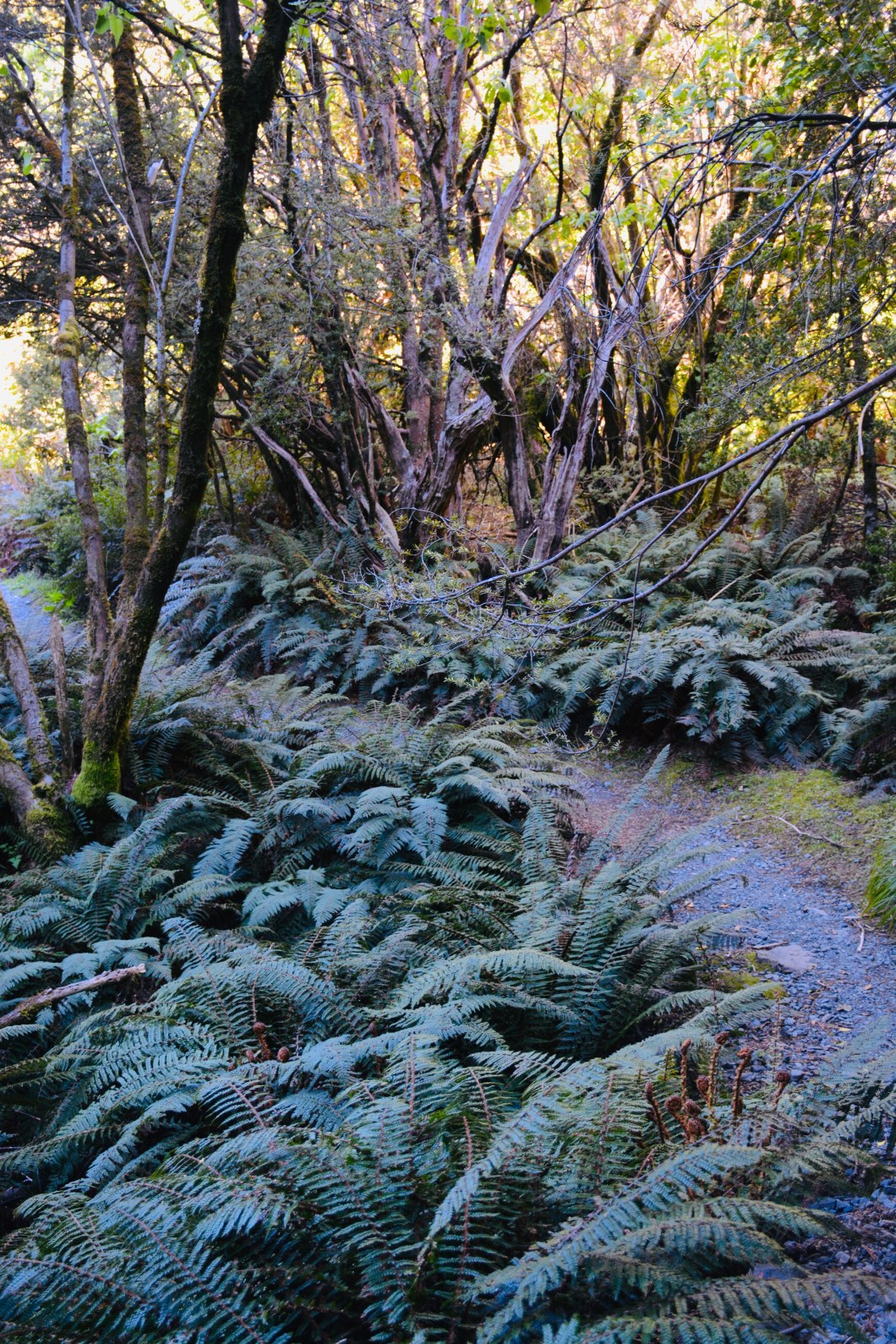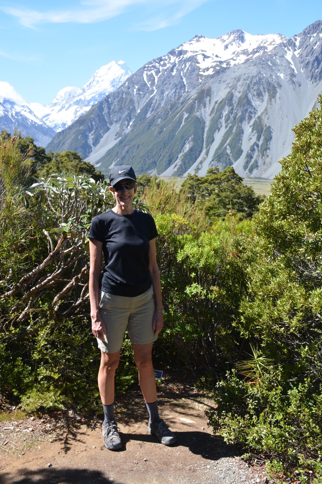And while it was chilly on the boat when we picked up speed, the weather was quite gorgeous. On our arrival day I know Pat didn’t think she’d wear any shorts, but in the afternoon she did when we went for another “tramp,” this one hilly and wooded. It was only a 50 minute walk but actually more challenging than yesterday’s trek. The trail was called Governor’s Bush. Unlike the crowded Hooker Valley Trail, we had this one to ourselves.