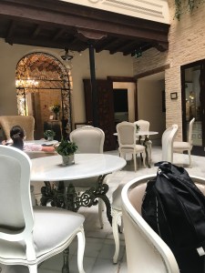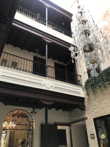 We had somewhat of an unusual day, unusual for us at least. Normally on these trips it is non-stop movement until we collapse from exhaustion, but yesterday we took time to enjoy the rooftop deck and pool at our accommodations, the Hotel 1800. It’s a short walk to the cathedral of Seville, but that is true of many hotels. This one features a central courtyard, and our room has 20-foot high wood-beamed ceilings.