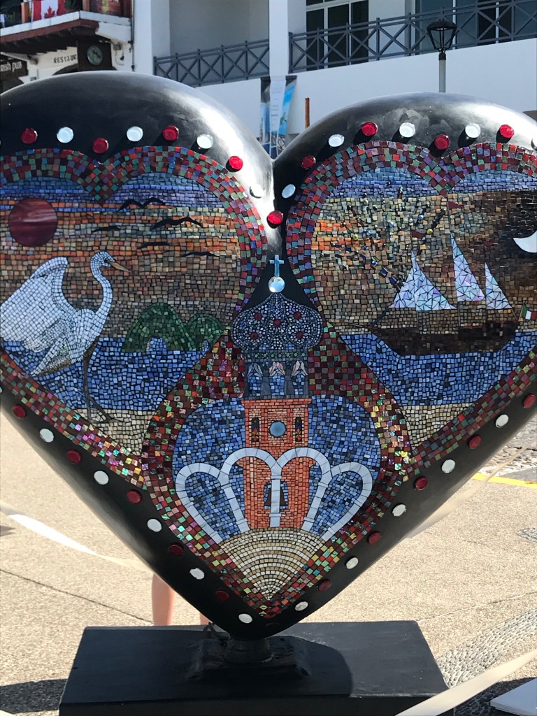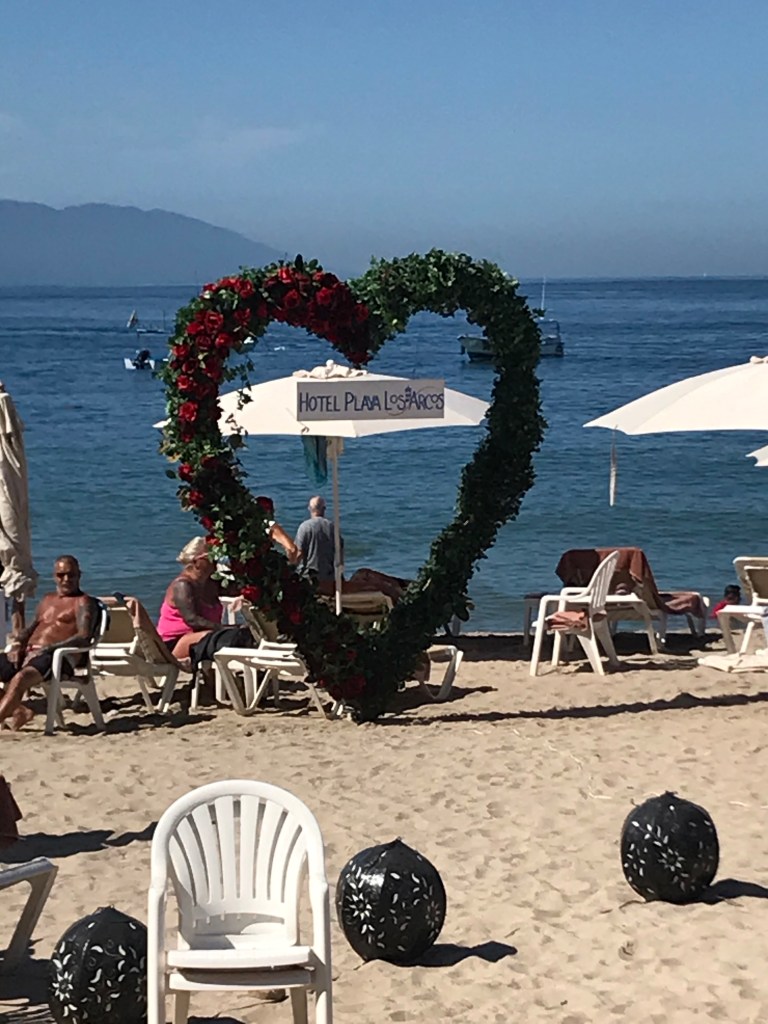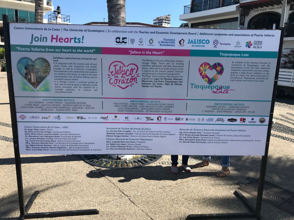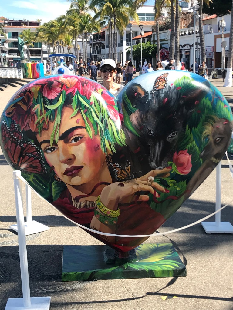 We are now into our third day at Ocho and feeling very relaxed. It’s amazing how well you can sleep here after a day of basically doing nothing, which was how we spent our Saturday. None of us even bothered to leave the villa. On Friday, Pat and I did our annual first-day walk into town to get some pesos and just stretch our legs. We walked the length of the malecon, effectively akin to a boardwalk, where the local government had sponsored an installation of hearts in the Tlaquepaque style. It’s the name of a town in the Jalisco state, where Puerto Vallarta is located, that is known for its pottery. PV has always been a very artsy town and these types of displays are common here.