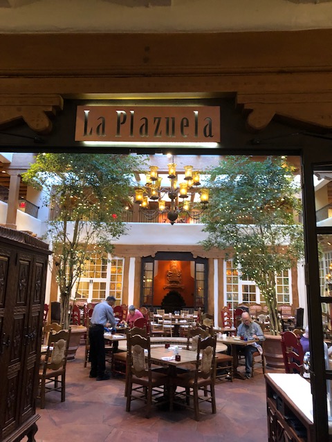 Our dinners were also uniformly good in Santa Fe. As mentioned, we enjoyed the hotel restaurant. We also dined at Coyote Cafe, which is said to have pioneered Southwestern regional cuisine 30 years ago. They also have a more casual, outdoor venue. Our final night was at Sazon. Little did I know that reservations are so coveted that hotel guests have bribed the concierge to get them a table. The Mexico-inspired food was fresh and inventive, and the setting was beautiful, as the photo below illustrates. We also enjoyed speaking with Chef Olea, who is originally from Mexico City but has been cooking in Santa Fe since 1991. He probably does very little cooking now since he visits each table throughout the night!