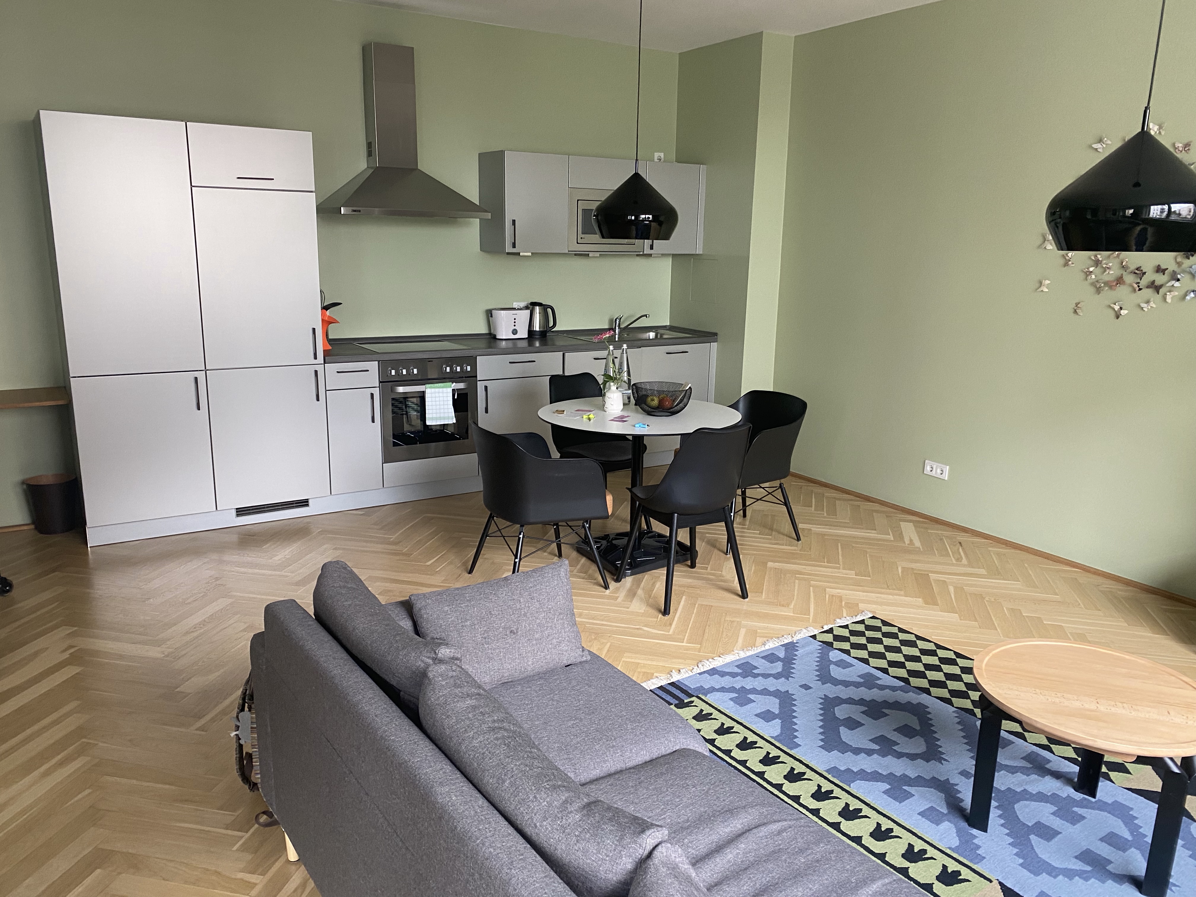 The cab driver also had trouble finding the Circus Apartments, where we are staying. There is also a Circus Hotel and a Circus Hostel, all operated by the same owner but a couple blocks apart. Pictures of the place follow, taken before we sprawled out. It’s going to be interesting to act like a resident. There are plenty of cafes and restaurants nearby, so finding sustenance won’t be hard, and we’ll be able to stock the fridge with snacks. Now we are off to explore.