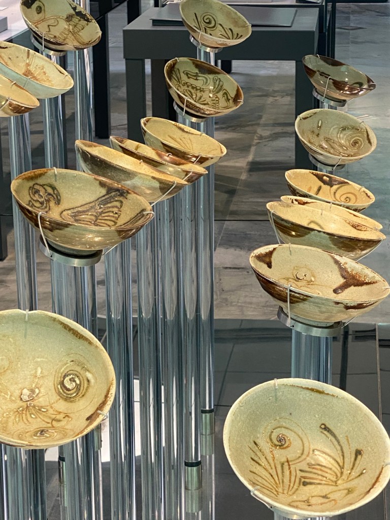Singapore’s location at the tip of the Malay Peninsula has long made it an important trading center and another display at the museum contained artifacts from a ship called the Tang that sank in the harbor around the year 830. Even then the Chinese were mass producing bowls and other finished goods for trade throughout Asia. Interesting.
