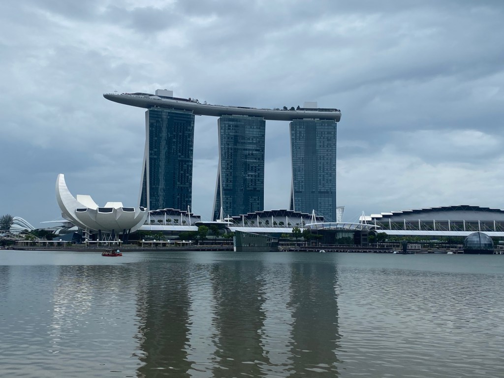 A daylong rain greeted us on our first full day in Singapore, but it didn’t dampen our touring spirit as the city is used to dealing with downpours. Rain is common in this region and buildings are often designed to provide covered walkways for pedestrians. In addition, shopping malls are seemingly everywhere, many of them underground and connected to subway stops. Those are maze-like and reminiscent of casino floors, as in they are designed to make it difficult for you to escape without spending some money.