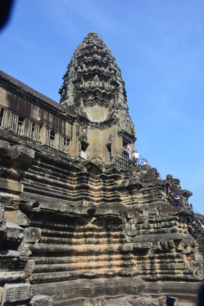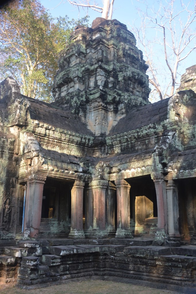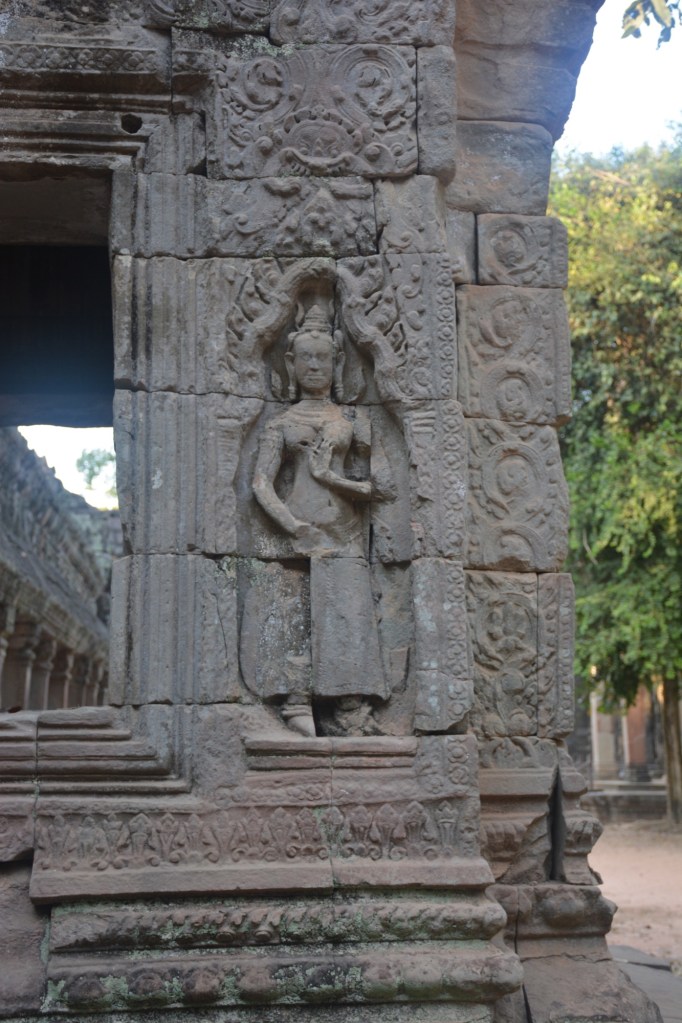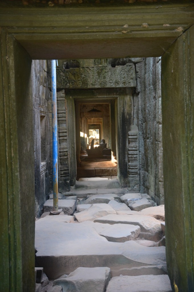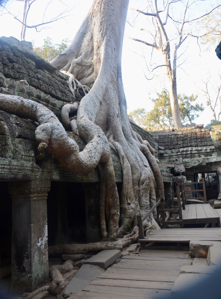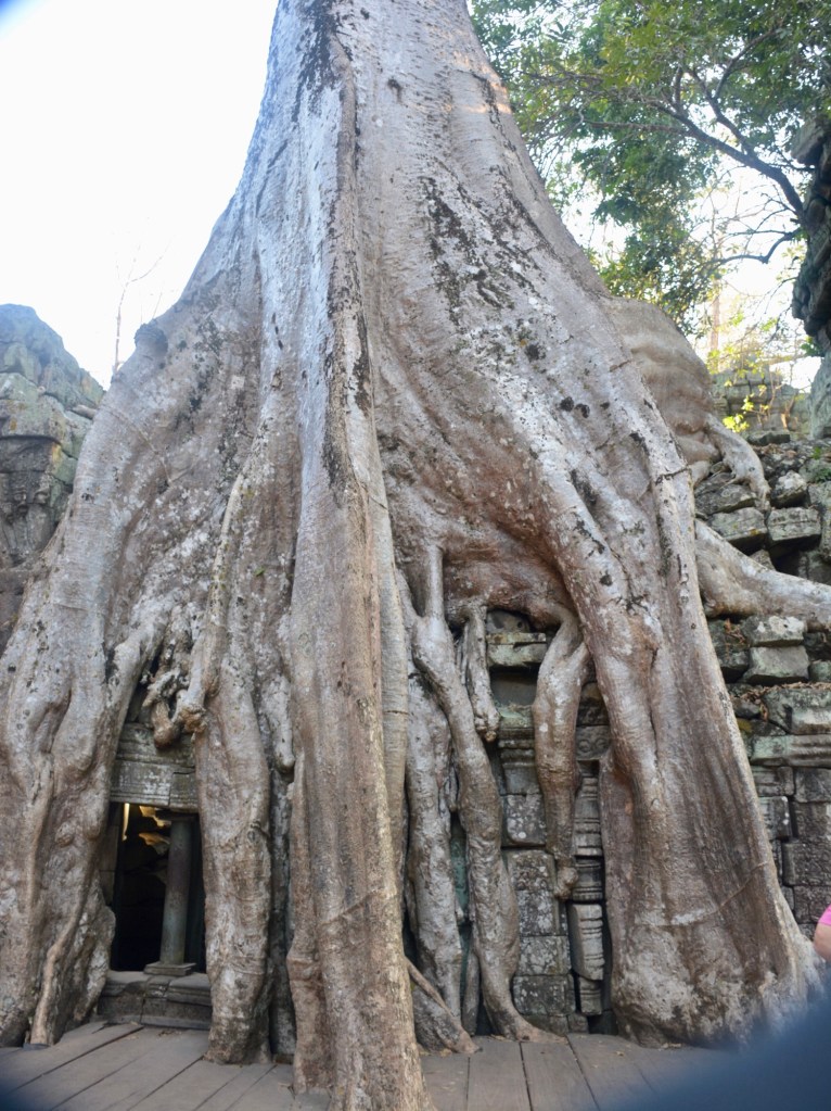There has been some partial restoration at the site but the overall plan is to leave the trees in place unless they become diseased. It was used for scenes in the movie “Laura Croft Tomb Raider,” which drove a big increase in visitors for a time. Tourist levels at present are only at about 35% of pre-pandemic volume, according to our guide, with the Chinese the biggest group that hasn’t yet returned. Bad for Cambodia but nice for us for a change.