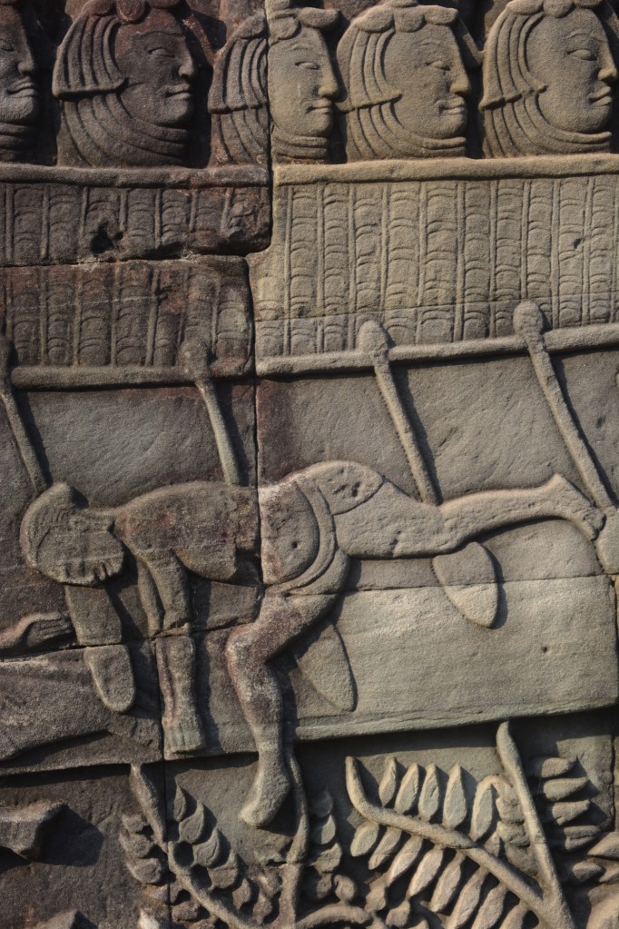 Lastly we visited the Bayon Temple. There are 54 stone towers in the temple, each with four carved faces on the sides of the towers. The heads symbolize one of Cambodia’s most revered kings. The bas-relief carvings in this temple are also impressive.