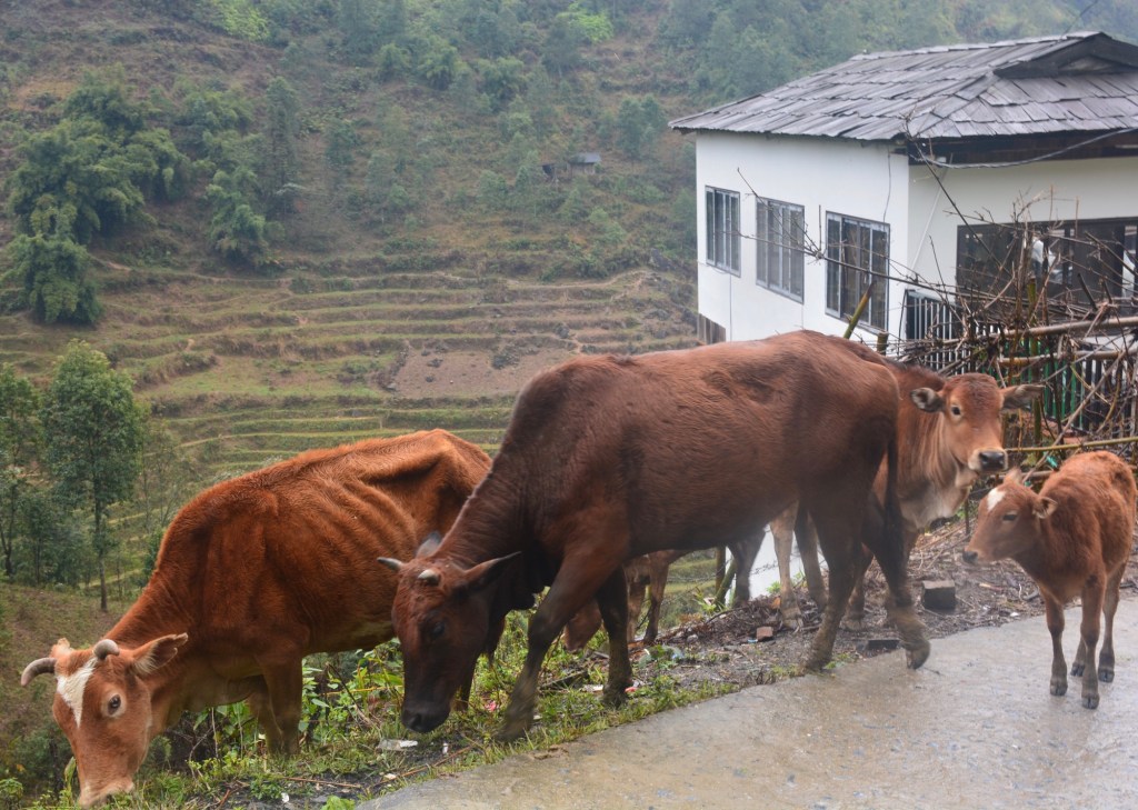 Our main trip for the day was a trek down a mountain lane to a village in a valley. It started out overcast, sort of rainy and foggy, but it soon started to periodically clear. The sun even peaked out from time to time. It’s strange how waves of clouds and fog roll in and out quickly, but that is evidently the norm for these parts. We also enjoyed a nice walk around the town of Sa Pa in the afternoon.
