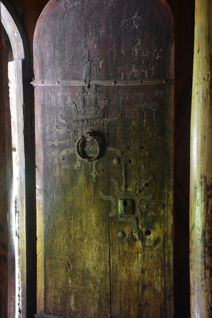 The entrance is elaborately carved, and there are other “carvings” – centuries old “graffiti” as well as even older runes. Scholars are still trying to interpret what the carvings mean and who might have left them.