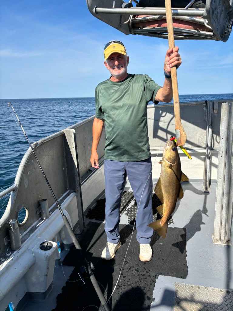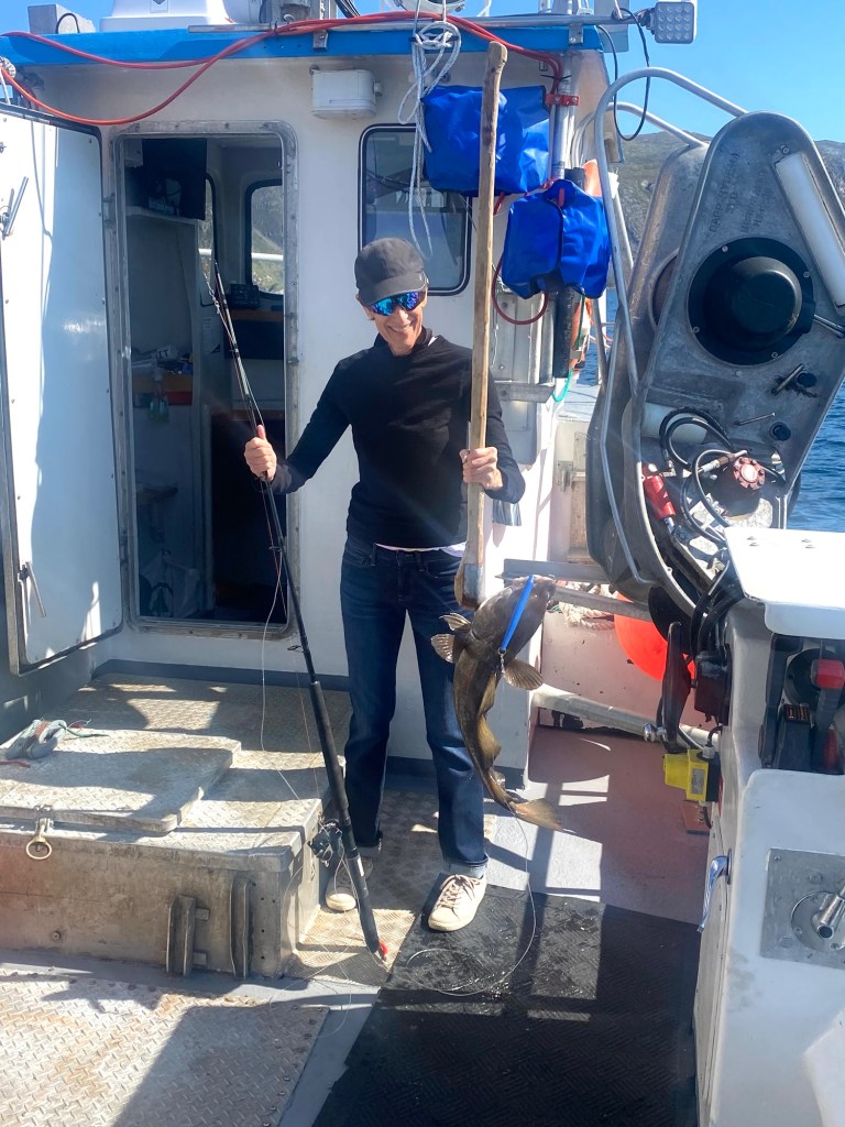 Our sail was pleasant, and then Roy asked if we were ready to fish. Hmmm, I didn’t expect that, but sure. He warned us that the chances of catching a fish were low since it was midday, but much to our surprise and delight, Jim caught two fish (pollock and cod) and I caught one (cod.)