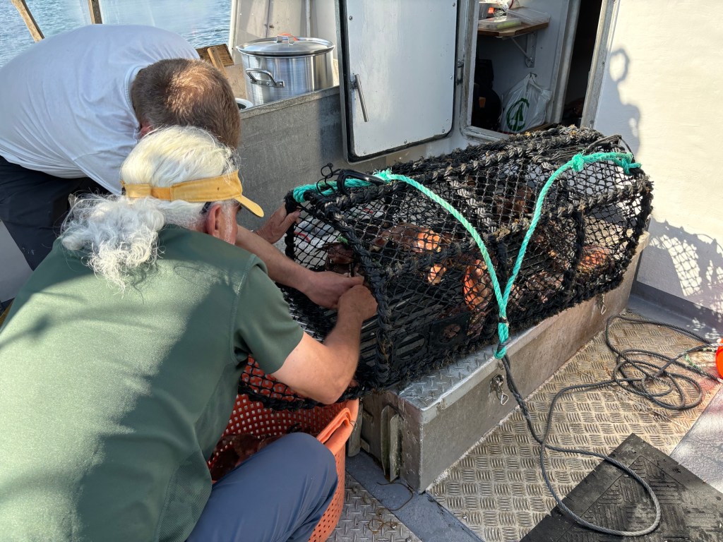 Then it was off to Roy’s dock to eat our fresh catch. He boiled the crab and cod and sautéed the pollock. There’s nothing like eating fish, simply prepared less than an hour from being pulled from the sea, all while sitting on a dock in the sun. I could get used to this.