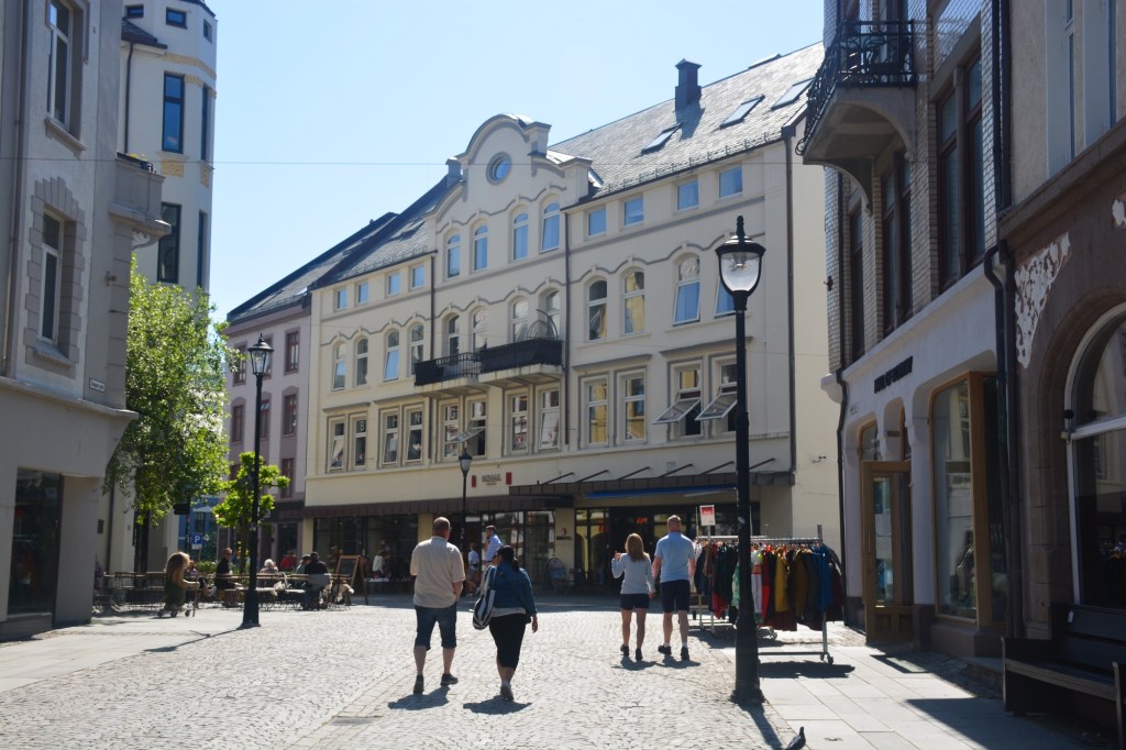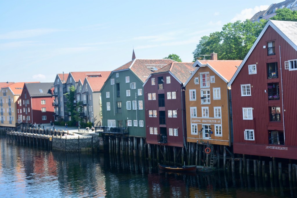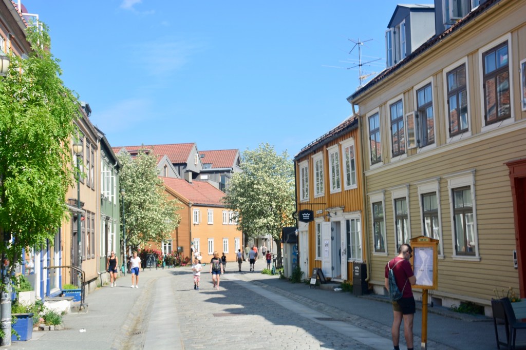 We were there on a Sunday afternoon when little was open, but the extended run of beautiful weather continued so we had a good stroll about town. The main tourist attraction is the Nidaros Cathedral, dedicated to Saint Olaf. The old section of town features cobblestone streets and colorful houses.