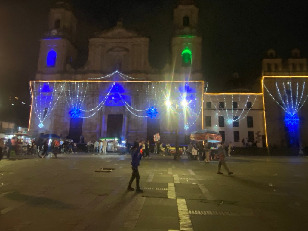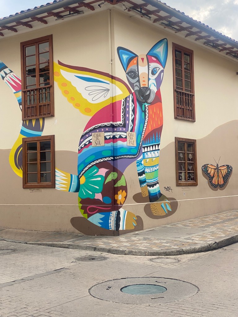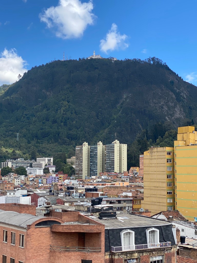 Bogota sits at 8,661 feet, so at that altitude we thought it best to start slowly. That said, after a short nap, we managed to cover a fair amount of ground in the historic Candelaria area where we’re staying. It’s lively with vendors, shops, museums, churches and historic colonial homes. We mostly just took in the vibes, but we did visit the Colonial Museo and a large library that had a nice view of the city and the hilltop sanctuary, Montserrate, from the terrace. (Photo above.) Montserrate sits at around 11,000 feet and is reachable via cable car or a funicular.