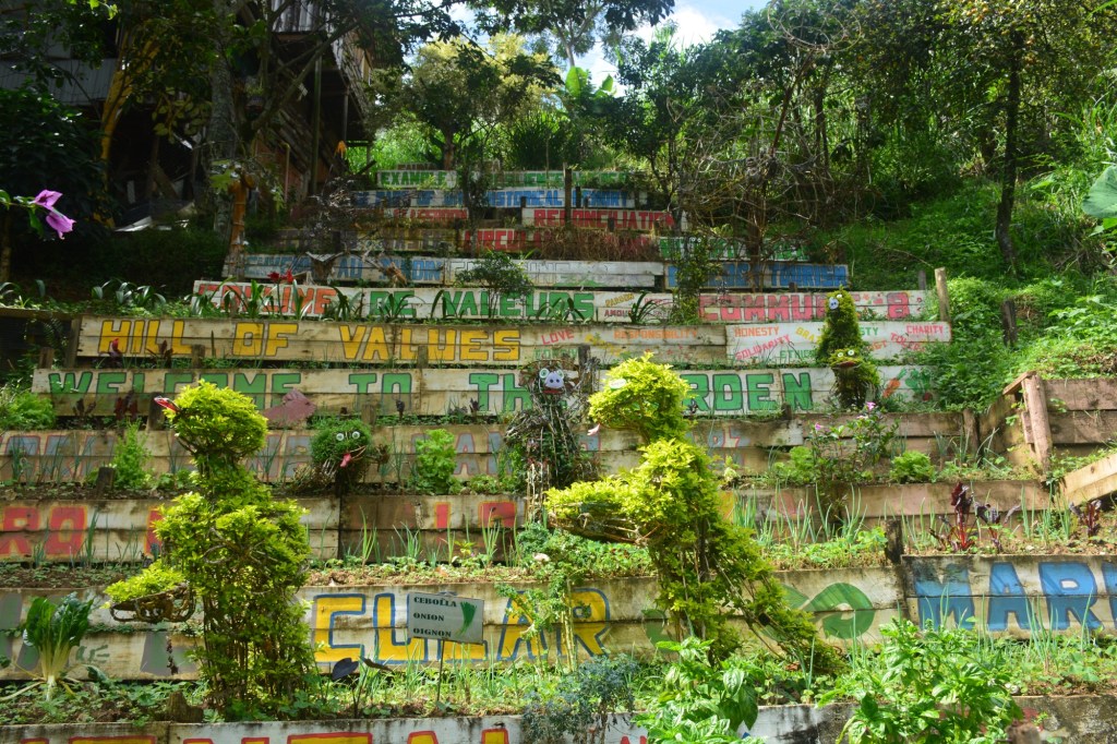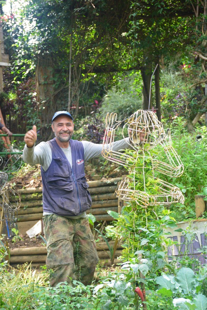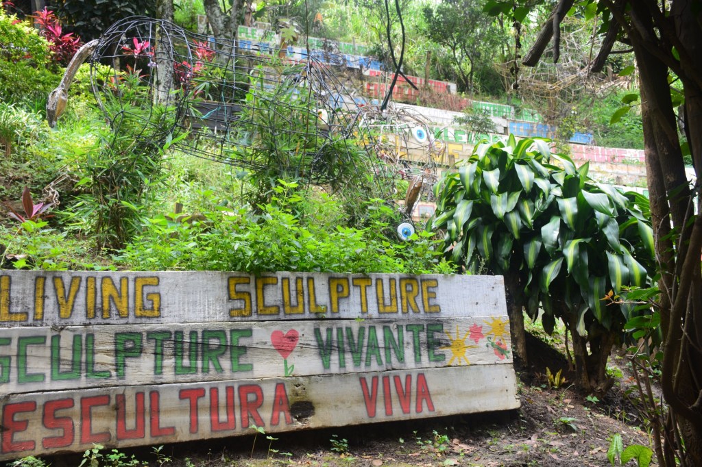 As we’d seen in Bogota, the people use art effectively – here they created sculptures in a community garden. One proud sculptor posed with his work.