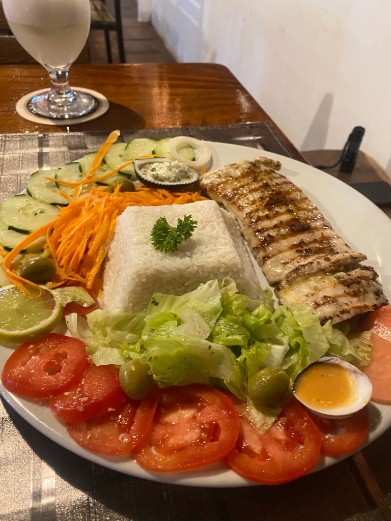 We will explore further but if our first dinner, at a Peruvian restaurant a short walk from our hotel is any indication, we are going to like it here. The catch of the day was amberjack, a fish we seldom see at home. I guarantee it was pulled from the ocean earlier that day and it was superb. Best of all, the meal, including one drink each, cost $50 including tip. Can’t beat that.