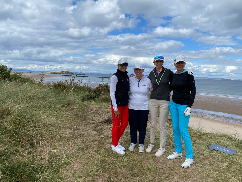 The course runs entirely along the Firth of Forth so we had constant sea views. Maggie and I created our own hazard by hitting onto the beach. We both made it back to the fairway.