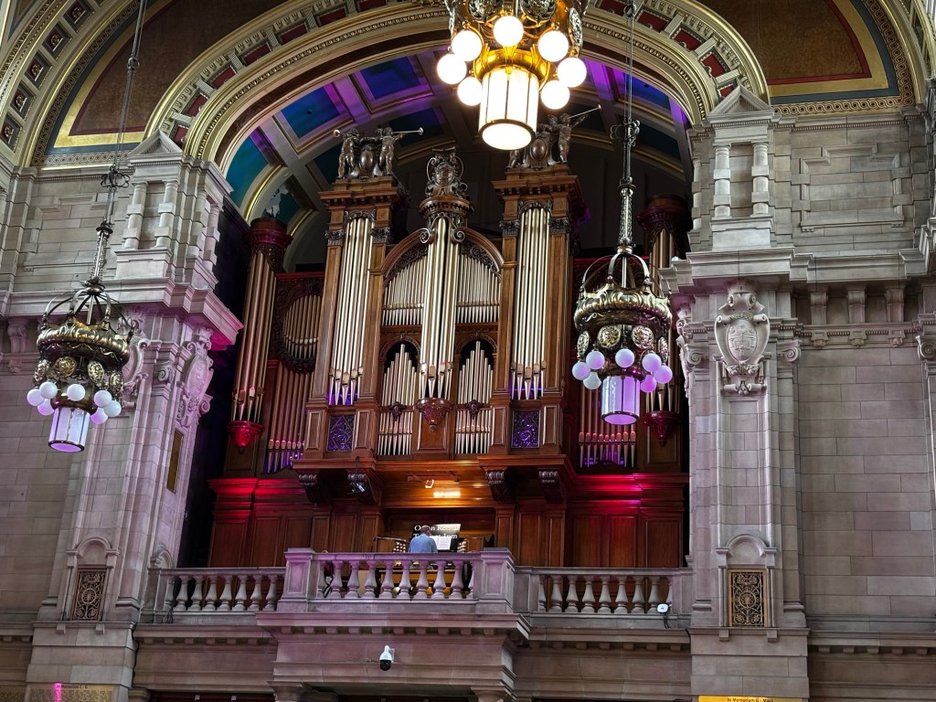 The Kelingrove is massive. We stopped at the cafe to get our bearings and realized we were just in time for a concert on the massive organ overlooking the lobby. The organist has been known to slip in contemporary covers along with the hymns.