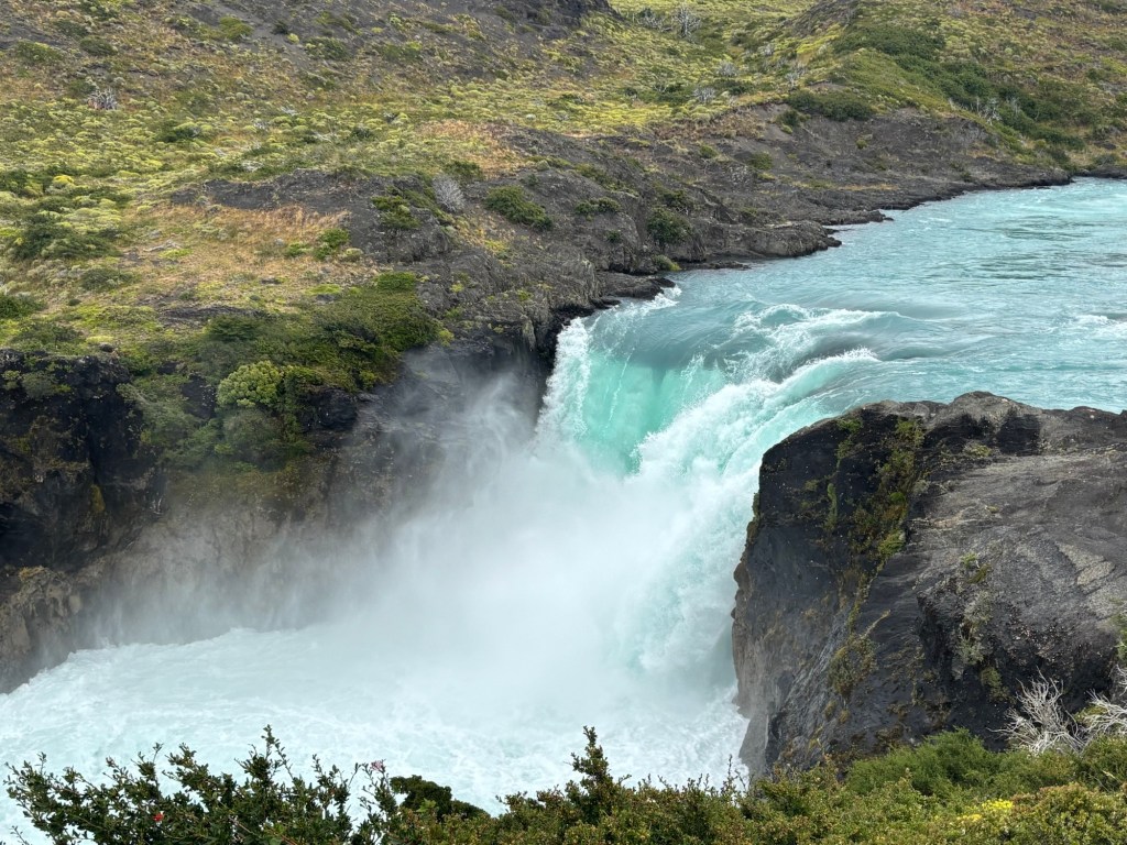 The fun started as our bus rounded a curve and we came upon Sarmiento Lake. The electric blue was a color I’d never seen in a lake before, and we had been pretty wowed by lakes in New Zealand.