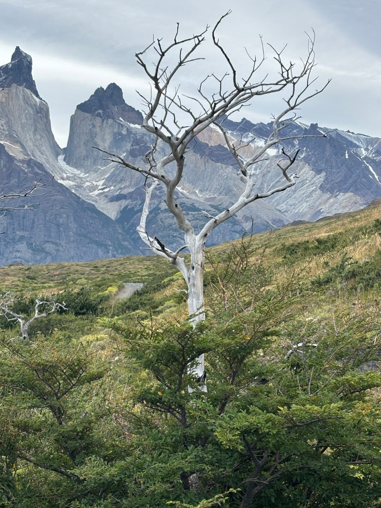 The first was a walk under sunny skies along gentle, rolling hills that took us past the Salto Grande waterfall, numerous varieties of plants and eventually to Lake Nordenskjold. Even on this easily accessible hike we couldn’t stop taking pictures. One feature that was especially photogenic, though sad, were the many trees that had been burned in a fire in 2012. Careless campers started the fire that dramatically affected the environment.