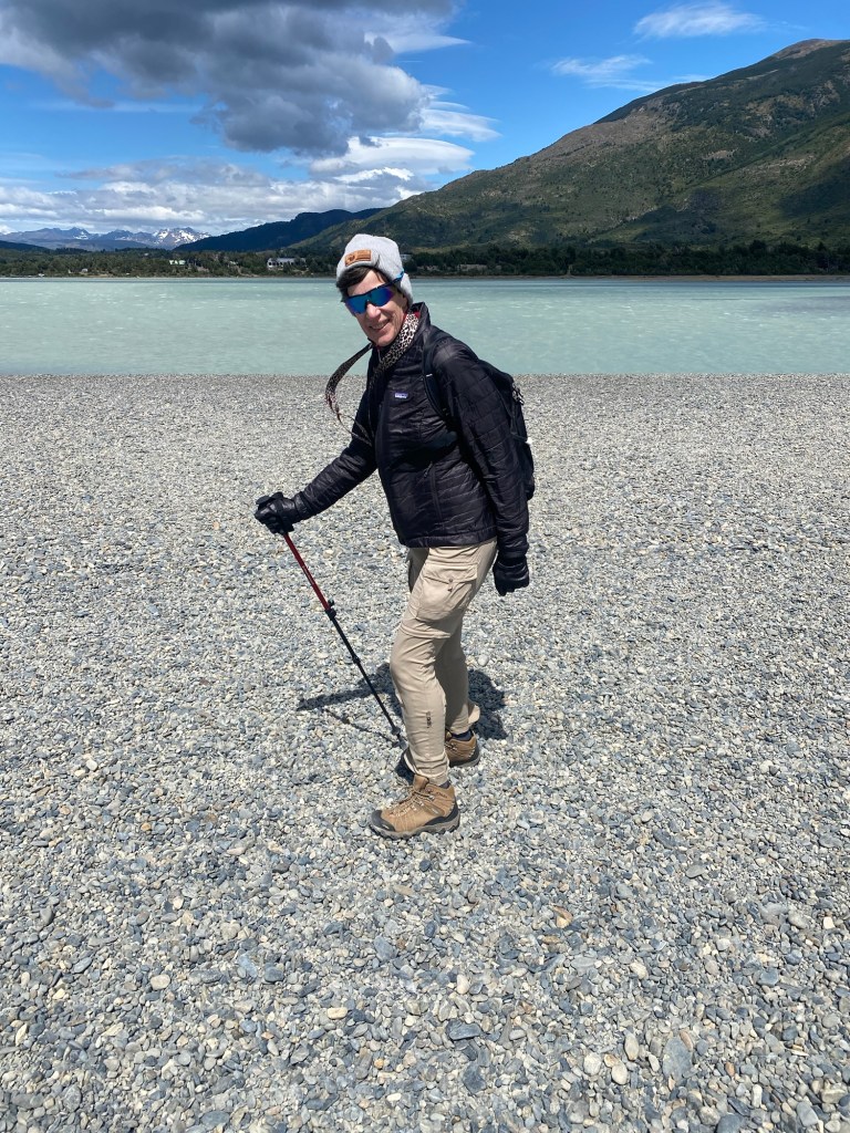I was feeling a bit disappointed that the hike wasn’t more challenging, but after lunch we went on hike number two around the banks of Grey Lake, a scenic lake fed by the Grey glacier. Here we were met by the forceful winds again, and just walking the flat beach covered in glacial moraine was a challenge. The highlight was climbing a steep hill right near the banks of the lake to get a great view of the glacier. It’s then that I started to imagine what it could be like doing some of the difficult, iconic hikes.